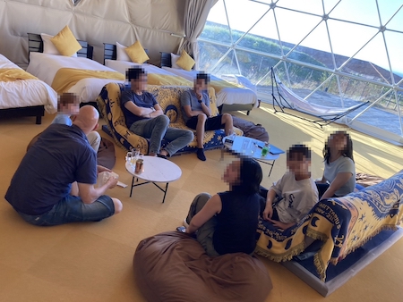 (昨年の夏、弟一家と弟の友人たちと一緒に行ったグランピング)