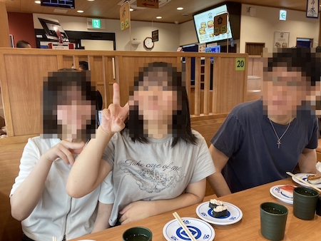 (弟一家と回転寿司へ笑 左の女の子二人は姪たちです。大きくなったな笑)